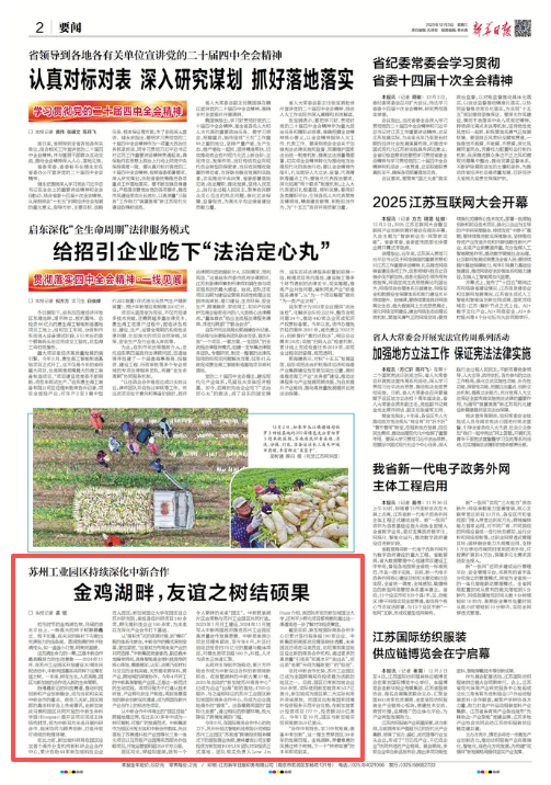 “合作中有特色、學(xué)習(xí)中有發(fā)展、借鑒中有創(chuàng)新”,這一理念貫穿園區(qū)30余年的發(fā)展歷程。金雞湖畔,帶著寒意的風(fēng)拂過柿子樹梢,下一個“柿柿如意”的豐年即將到來。