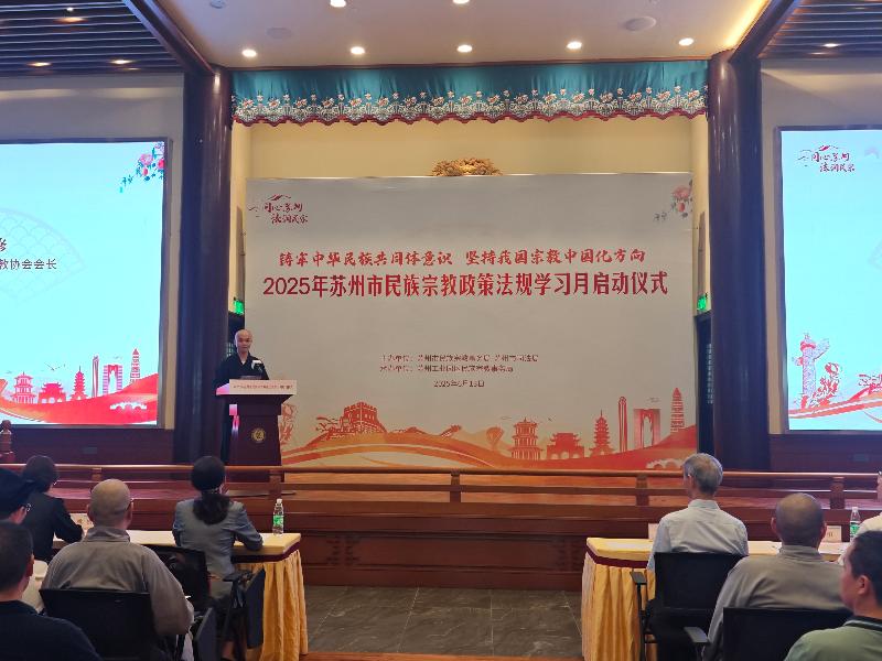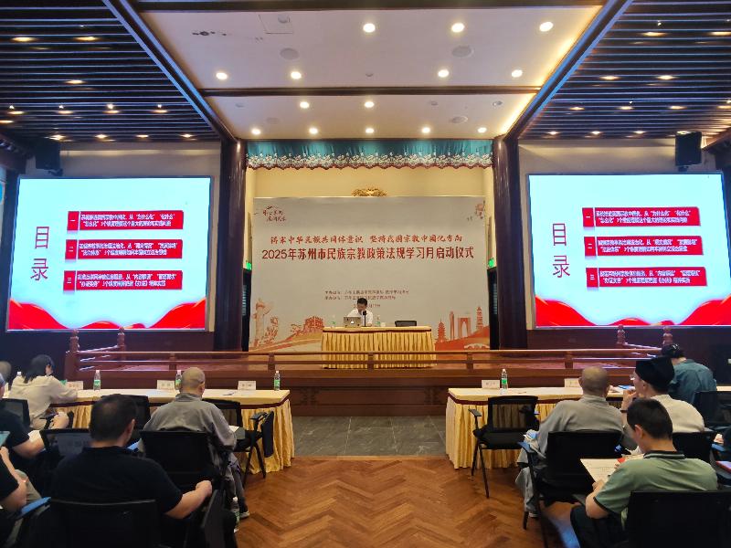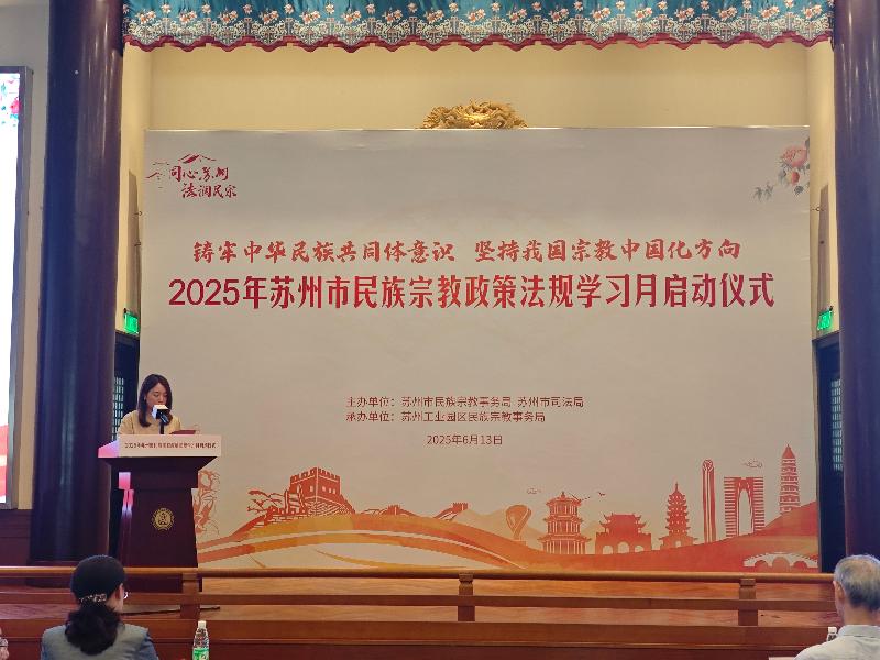 6月13日下午,由蘇州市民宗局、蘇州市司法局主辦,蘇州工業(yè)園區(qū)民宗局承辦的2025年蘇州市民族宗教政策法規(guī)學習月系列活動在蘇州工業(yè)園區(qū)重元寺順利舉辦。園區(qū)宣傳和統(tǒng)戰(zhàn)部、各街道、各社區(qū)、民促會、各宗教團體、各宗教院校、各宗教活動場所有關負責人及社會各族各界代表人士等150余人參加了本次活動。