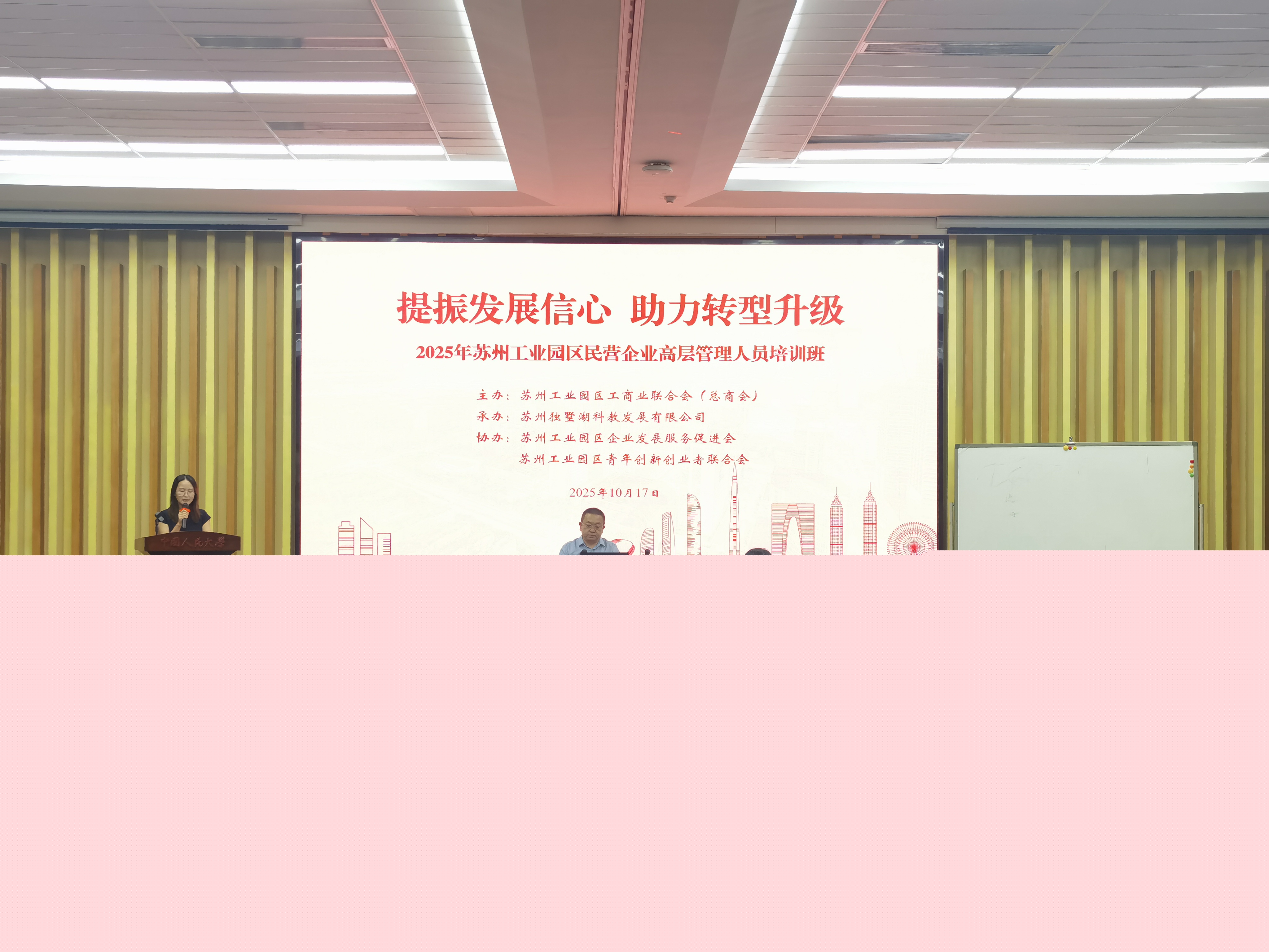 10月16日至17日,2025年蘇州工業(yè)園區(qū)民營企業(yè)高層管理人員培訓班在中國人民大學(蘇州校區(qū))成功舉辦。本次培訓由園區(qū)工商聯(lián)(總商會)主辦,旨在幫助園區(qū)廣大民企負責人開拓視野、認清形勢,準確把握新時代中國穩(wěn)中求進的大趨勢,不斷提高民企的內生動力。兩天共超過200人次參加培訓。