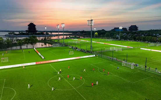 The Yangchenghu Peninsula Football Park also boasts top-level waterfront natural grass football fields with turfs green throughout the year. It has hosted over 1,000 sports events since its opening last May,