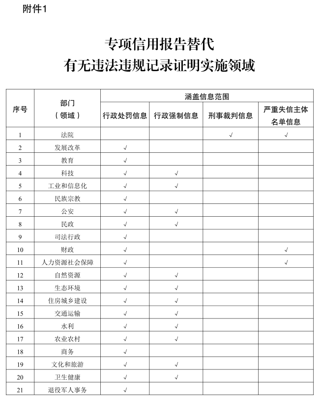 附件:1.專項信用報告替代有無違法違規(guī)記錄證明實施領域