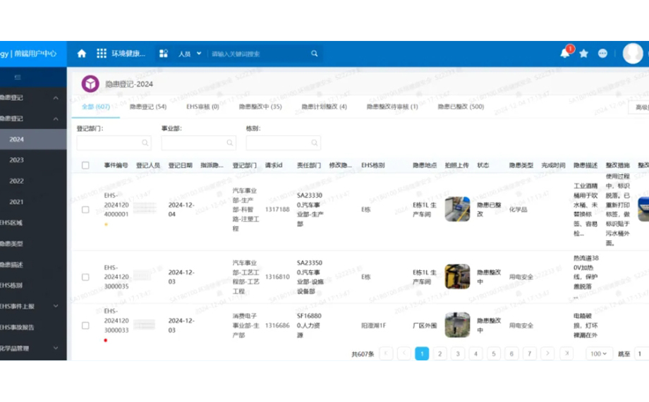 自2021年起,為便于全體員工反饋安全隱患,星諾奇上線隱患登記系統(tǒng),員工在線上可以直接上報隱患。同時,還能通過系統(tǒng)在線學習常見隱患圖示、查閱EHS部門日常安全檢查臺賬及自己報送隱患的后續(xù)閉環(huán)情況。4年間,隱患登記系統(tǒng)持續(xù)更新優(yōu)化,期間維護了近100條適用于工廠的標準隱患圖示和隱患描述,極大地提高了員工隱患提報精準度,使得企業(yè)風險管控水平大大提升。