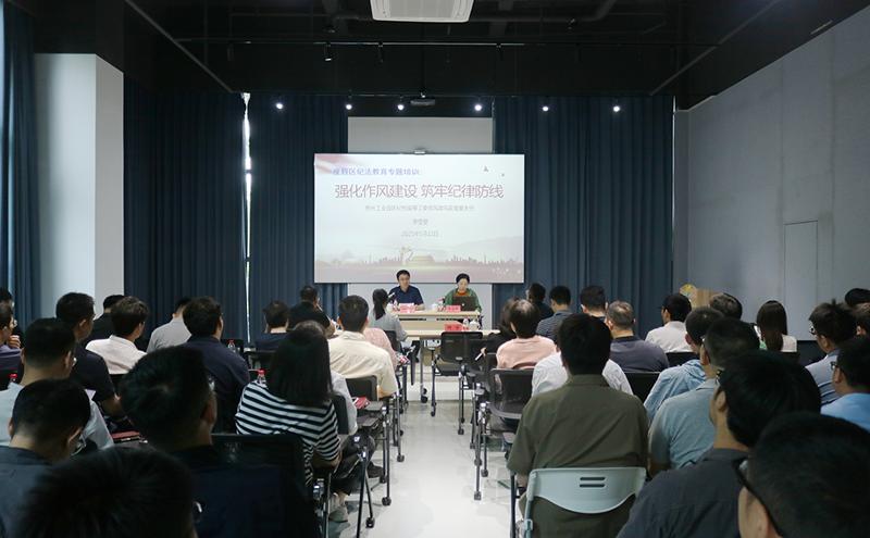 此次培訓邀請了園區紀檢監察工委黨風政風監督室相關負責人開展專題講座。講座圍繞“強化作風建設 筑牢紀律防線”的主題,結合典型案例和政策要求,從貫徹黨風廉政建設“一崗雙責”具體要求、推動群眾身邊不正之風和腐敗問題集中整治工作走深走實、鍥而不舍落實中央八項規定精神、深化運用容錯糾錯工作機制等方面進行了深入淺出的講解,并對行政執法隊伍如何防范廉政風險、規范履職行為提出了明確要求,既有理論高度,又有實踐指導意義,為與會人員指明了未來的工作方向。