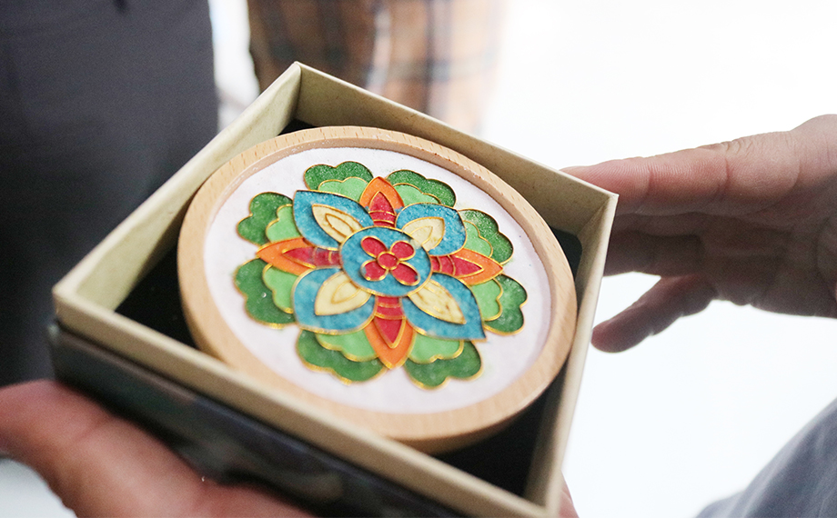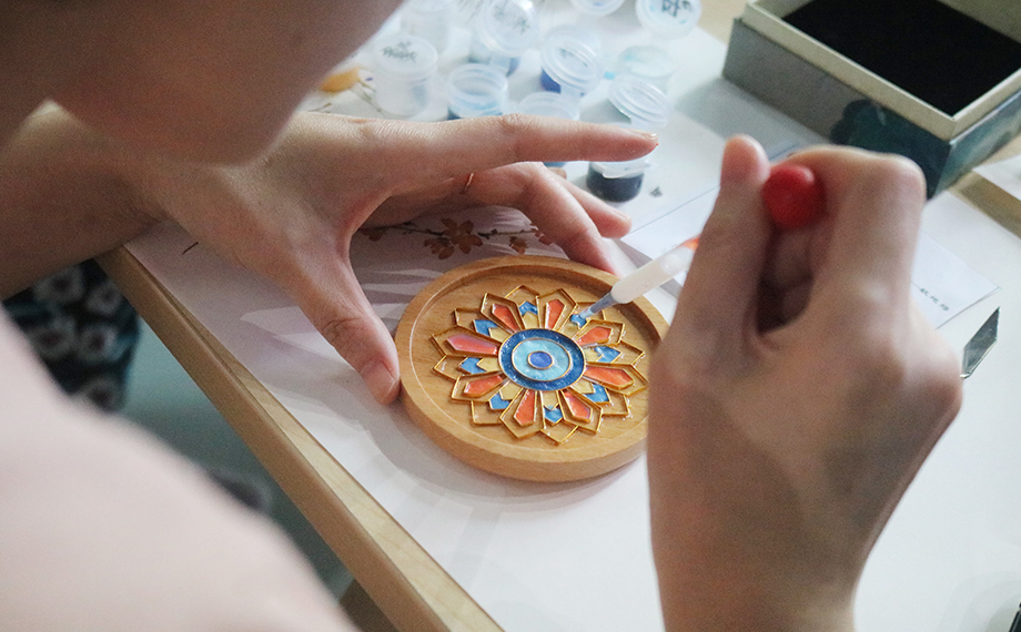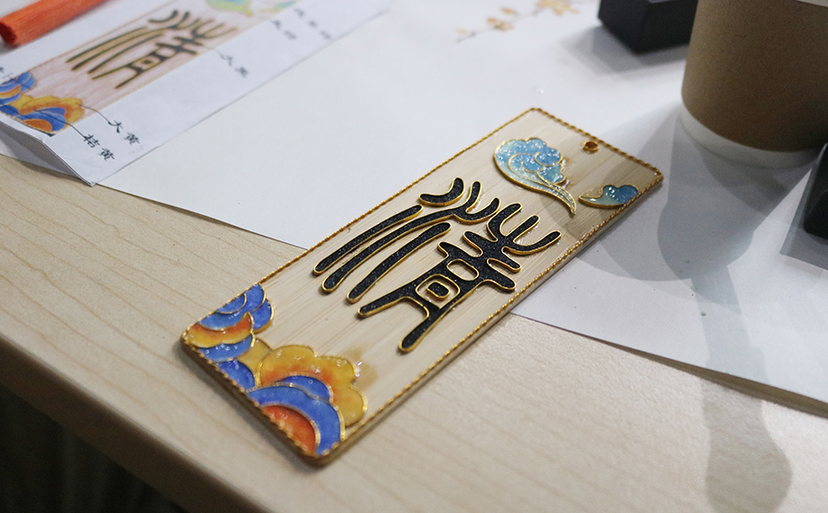 正是因為以湯斌為代表的良臣傾力為民,社會才能進(jìn)步、時局才能穩(wěn)固,這也為乾隆時期景泰藍(lán)的復(fù)興創(chuàng)造了條件。景泰藍(lán),即掐絲琺瑯工藝,是中國的著名特種金屬工藝品類之一。在隨后的文化體驗課環(huán)節(jié),大家興致勃勃地在老師的講解和幫助下參與到景泰藍(lán)手工技藝的體驗活動中,以金絲作胎,填充色釉,制作出屬于自己的景泰藍(lán)工藝蓮花杯墊、書簽、小鏡,用蓮心現(xiàn)廉韻,感受傳統(tǒng)文化魅力。