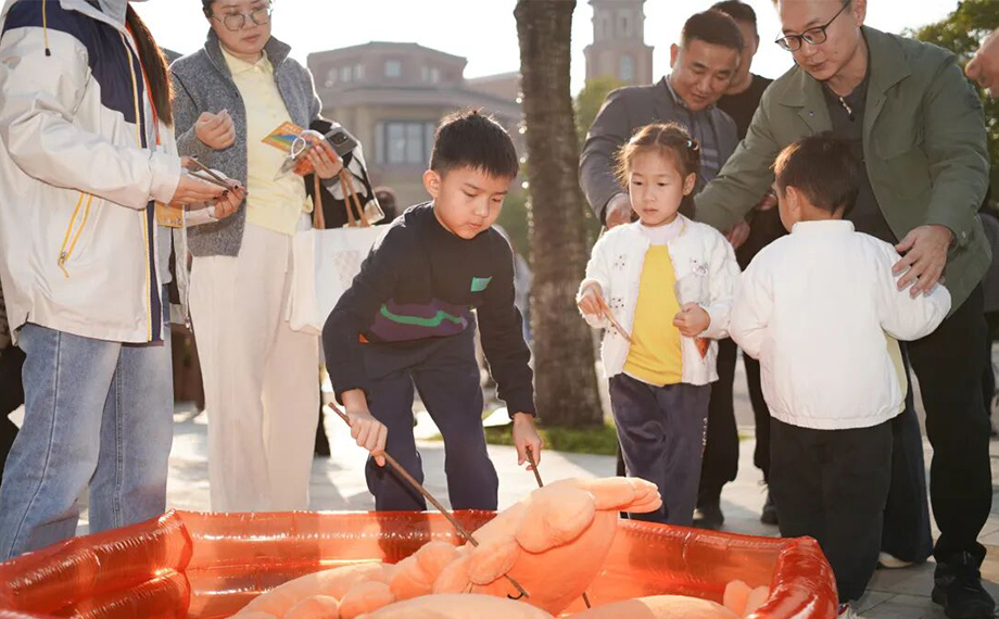 在“夾蟹啦”環節中,參與者需在30秒內用筷子將超萌造型的大螃蟹夾至指定盤中,大家各顯身手,專注投入,歡笑聲與加油聲此起彼伏。